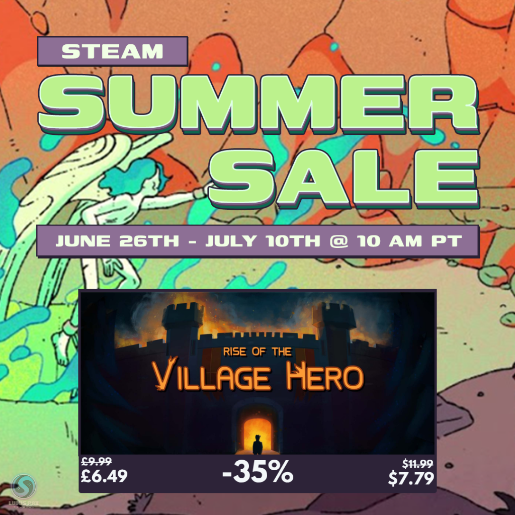 I wanted to let you know that my first commercial game, Rise of the Village Hero is part of the Steam summer sale, currently 35% off.
